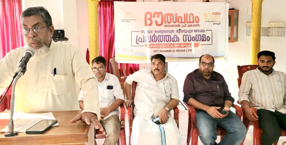 * ആലുവ: ഏരിയ ദൗത്യപഥം ക്യാമ്പ് കെ എന് എം മര്കസുദ്ദഅ്വ സംസ്ഥാന സെക്രട്ടറി സി മമ്മു കോട്ടക്കല് ഉദ്ഘാടനം ചെയ്തു. സൗത്ത് സോണ് പ്രസിഡന്റ് എം കെ ശാക്കിര് അധ്യക്ഷത വഹിച്ചു. എം എസ് എം സംസ്ഥാന സെക്രട്ടറി ഫഹീം പുളിക്കല്, കെ എം ജാബിര് പ്രഭാഷണം നടത്തി. കെ കെ ഹുസൈന് സ്വലാഹി, സിയാദ് എടത്തല, പരീത് കുഞ്ഞ് പല്ലാരിമംഗലം, കെ എം സലിം പെരുമ്പാവൂര്, എം പി അബ്ദുറഹ്മാന്, കെ എം സലിം, കബീര് സുല്ലമി, ടി വൈ നുനൂജ്, നൗഫിയ ഖാലിദ്, അബ്ദുല്ല അദ്നാന്, എ എ മുനീര്, വി കെ ഉസ്മാന്, എം എം അബ്ദുല്കരീം, സിയാദ് എടത്തല പ്രസംഗിച്ചു.