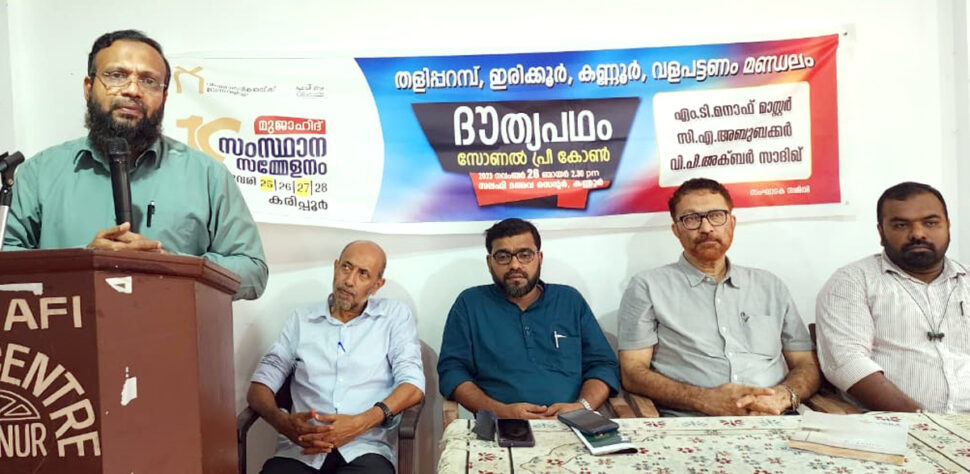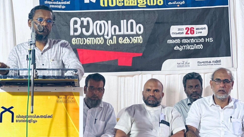 * ഓമശ്ശേരി: കൊടുവള്ളി ഈസ്റ്റ് മണ്ഡലം ദൗത്യപഥം കെ എന് എം മര്കസുദ്ദഅ്വ സംസ്ഥാന സെക്രട്ടറി അബ്ദുല്ലത്തീഫ് കരുമ്പുലാക്കല് ഉദ്ഘാടനം ചെയ്തു. ജില്ലാ സെക്രട്ടരി പി സി അബ്ദുറഹിമാന് അധ്യക്ഷത വഹിച്ചു. അബ്ദുസ്സലാം മുട്ടില്, പി എം ഹുസയില്, ടി ഒ അബ്ദുറഹിമാന്, പി വി സാലിഫ്, കെ കെ റഫീഖ്, പി സി ഫൈസല്, പി വി അലി അക്ബര്, എം പി മൂസ, ടി കെ അബ്ദുറസാക്ക്, റസാക്ക് മലോറം, പി അബ്ദുല് മജീദ് മദനി, ടി പി എം ആസിം, എം ടി നജ്മ, കെ കെ അഷ്ഫാക്കലി, എം കെ പോക്കര് സുല്ലമി, പി വി അബ്ദുസലാം മദനി പ്രസംഗിച്ചു.