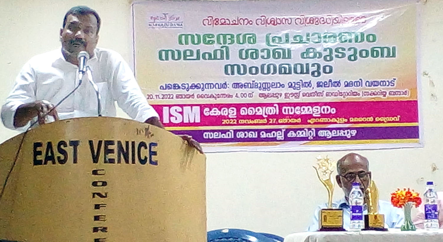 ആലപ്പുഴ: ലൈംഗിക അരാജകത്വത്തിലേക്ക് വഴിവെക്കുന്ന പാഠ്യപദ്ധതി പരിഷ്കരണ നിര്ദേശങ്ങള് അംഗീകരിക്കാനാവില്ലെന്ന് കെ എന് എം മര്കസുദ്ദഅ്വ ആലപ്പുഴ സലഫി മഹല്ല് കമ്മിറ്റി സംഘടിപ്പിച്ച കുടുംബസംഗമം അഭിപ്രായപ്പെട്ടു. സൗത്ത് സോണ് ട്രഷറര് എ പി നൗഷാദ് ഉദ്ഘാടനം ചെയ്തു. പ്രസിഡന്റ് സാഹിബ് ജാന് അധ്യക്ഷത വഹിച്ചു. അബ്ദുസ്സലാം മുട്ടില്, അബ്ദുല് ജലീല് മദനി വയനാട് പ്രഭാഷണം നടത്തി. ഷമീര് ഫലാഹി, എം ജി എം ജില്ലാ പ്രസിഡന്റ് ഡോ. ബേനസീര് കോയ തങ്ങള്, ആലപ്പുഴ മണ്ഡലം സെക്രട്ടറി മുബാറക് അഹമ്മദ്, പി നസീര്, കലാമുദ്ദീന് പ്രസംഗിച്ചു.